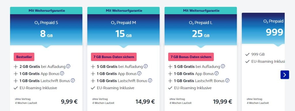 | Blau Allnet XS+ | 7 GB | Flat | 7,99 € | Etwas mehr Daten für wenig mehr 💡 |